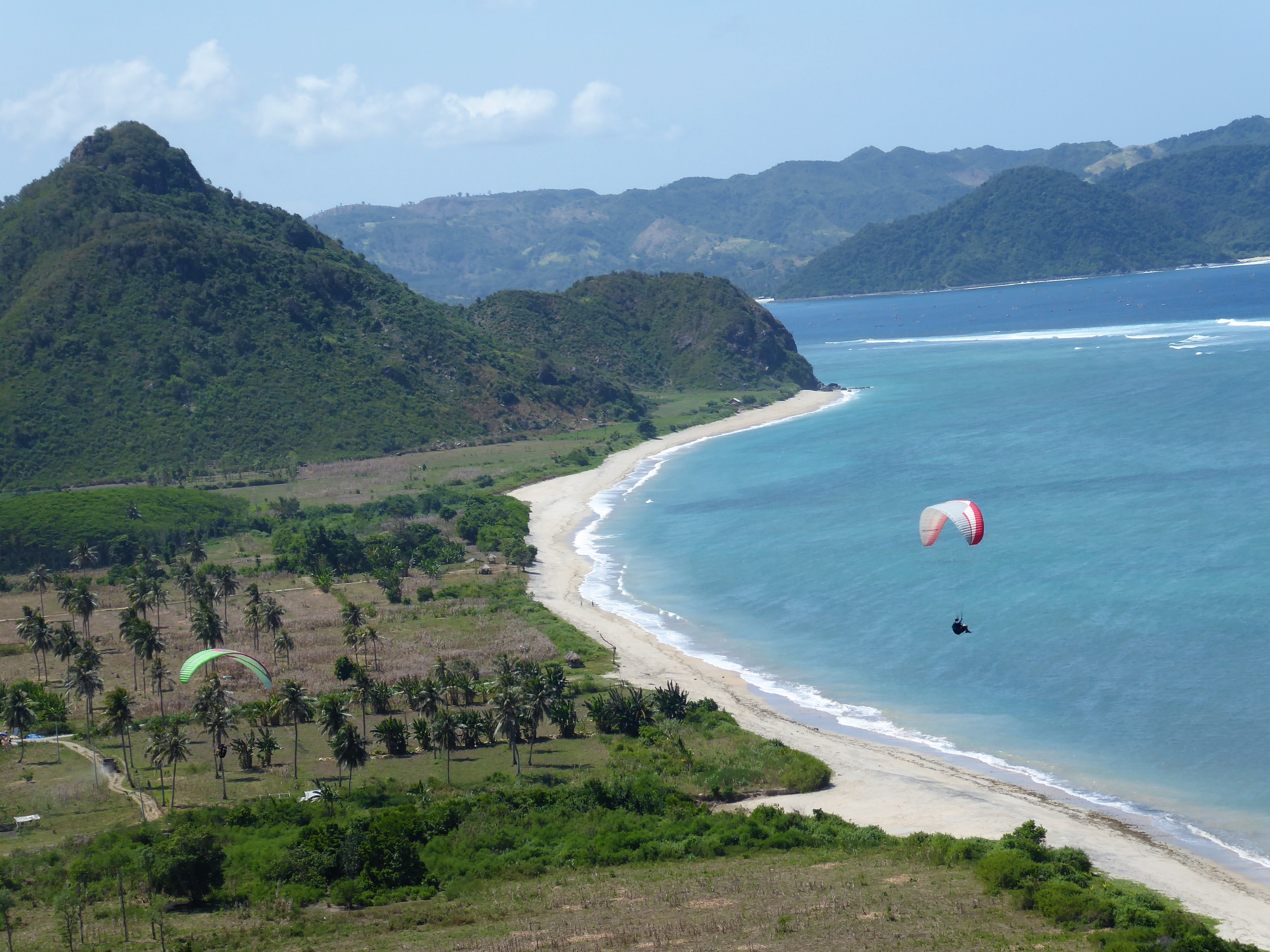Jetzt seid ihr erst mal völlig relaxt und der erste Flughunger ist gestillt. Für 5 Tage und 6 Nächte geht es jetzt auf die östlich von Bali gelegene Insel Lombok. Hier werden wir 3 Tage an der Südküste verbringen und in einer paradiesischen Kulisse an verschiedenen Startplätzen zusammen mit den Locals an der Küste soaren. Einsame weiße Sandstrände laden zu einer Abkühlung in den Indischen Ozean ein. 2 weitere Tage verbringen wir am Fuße des 3700m hohen aktiven Vulkans Mt. Rinjani im Osten der Insel. Hier werden wir zu Wasserfällen und alten traditionellen Dörfern im Dschungel wandern.