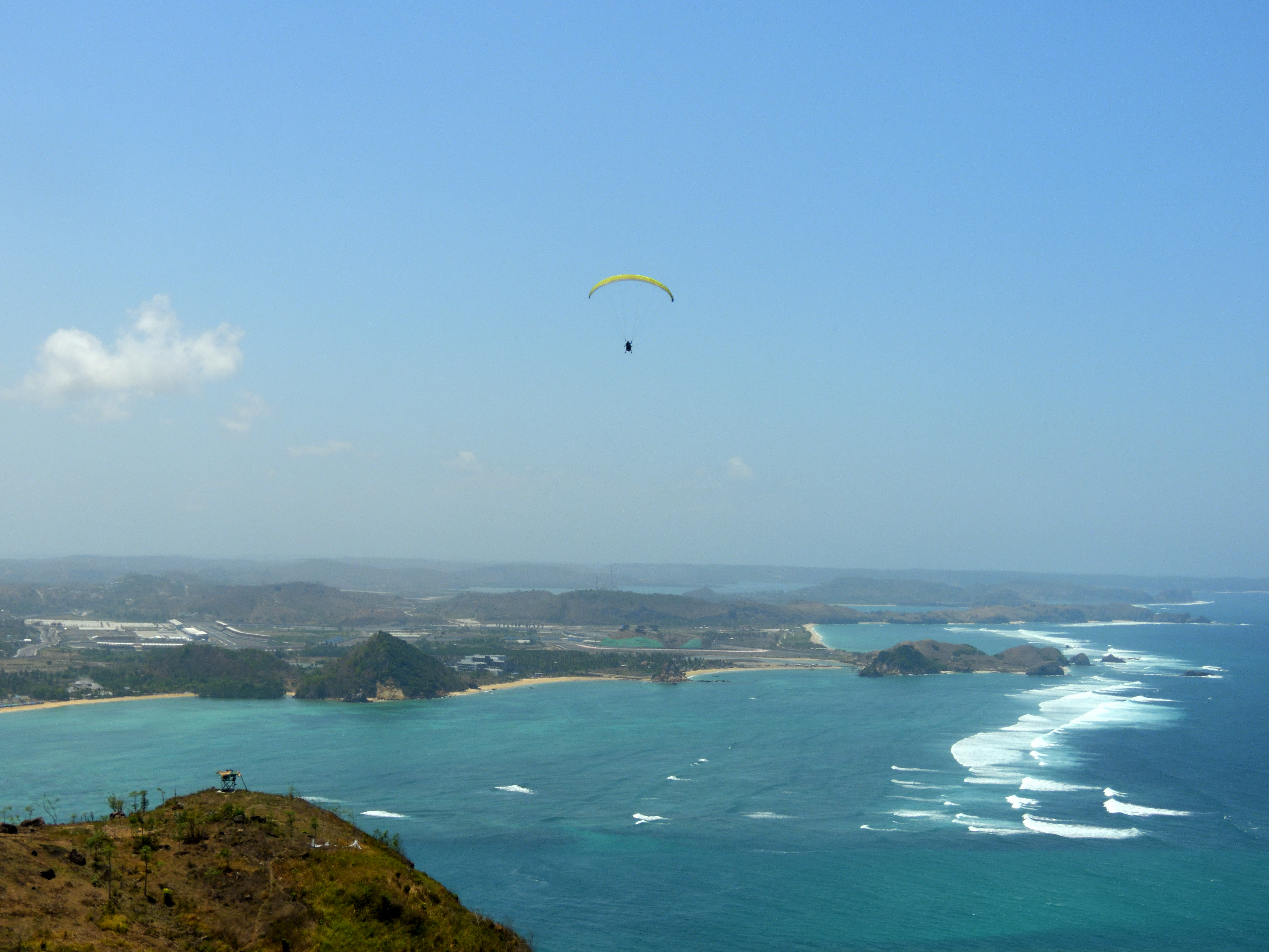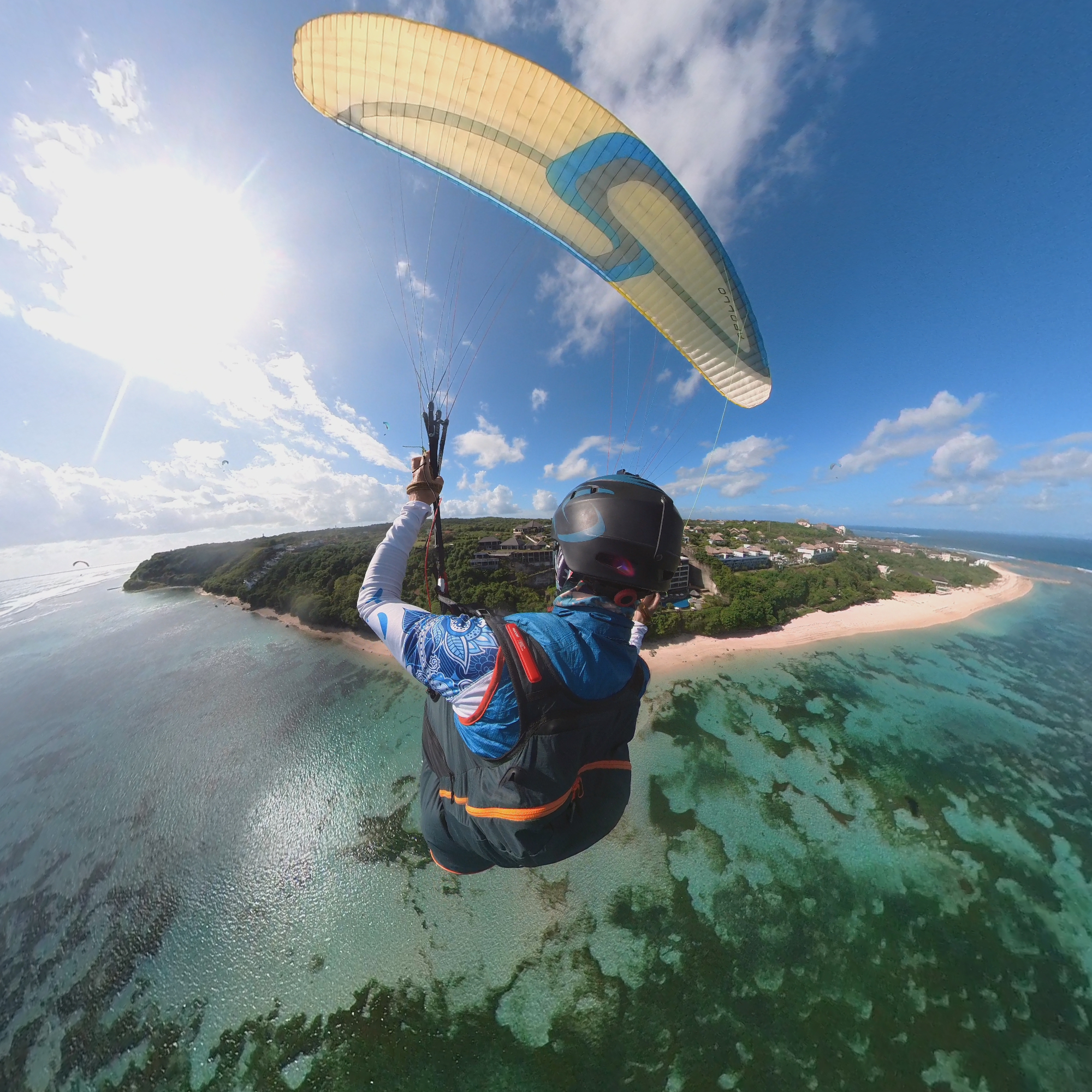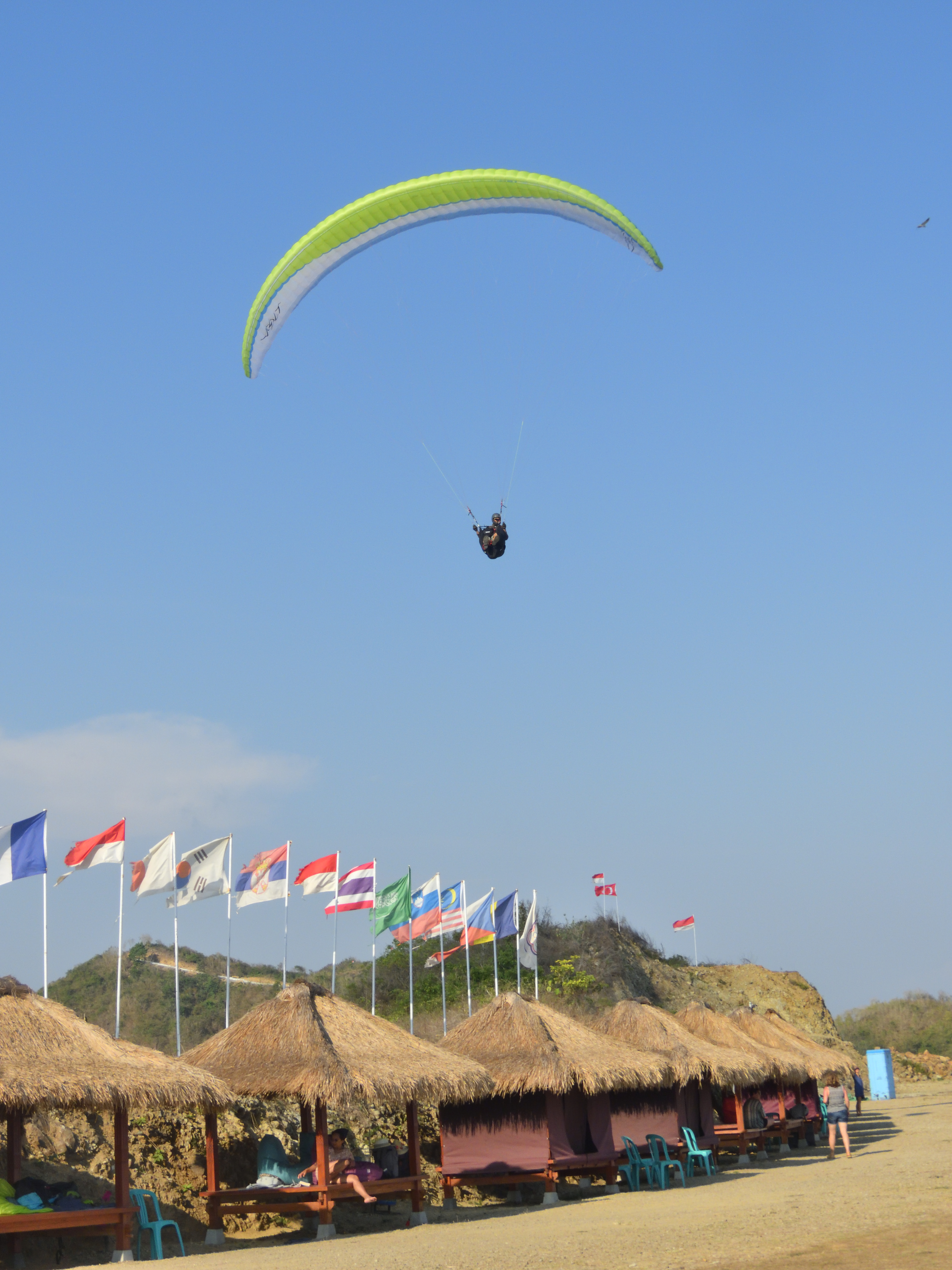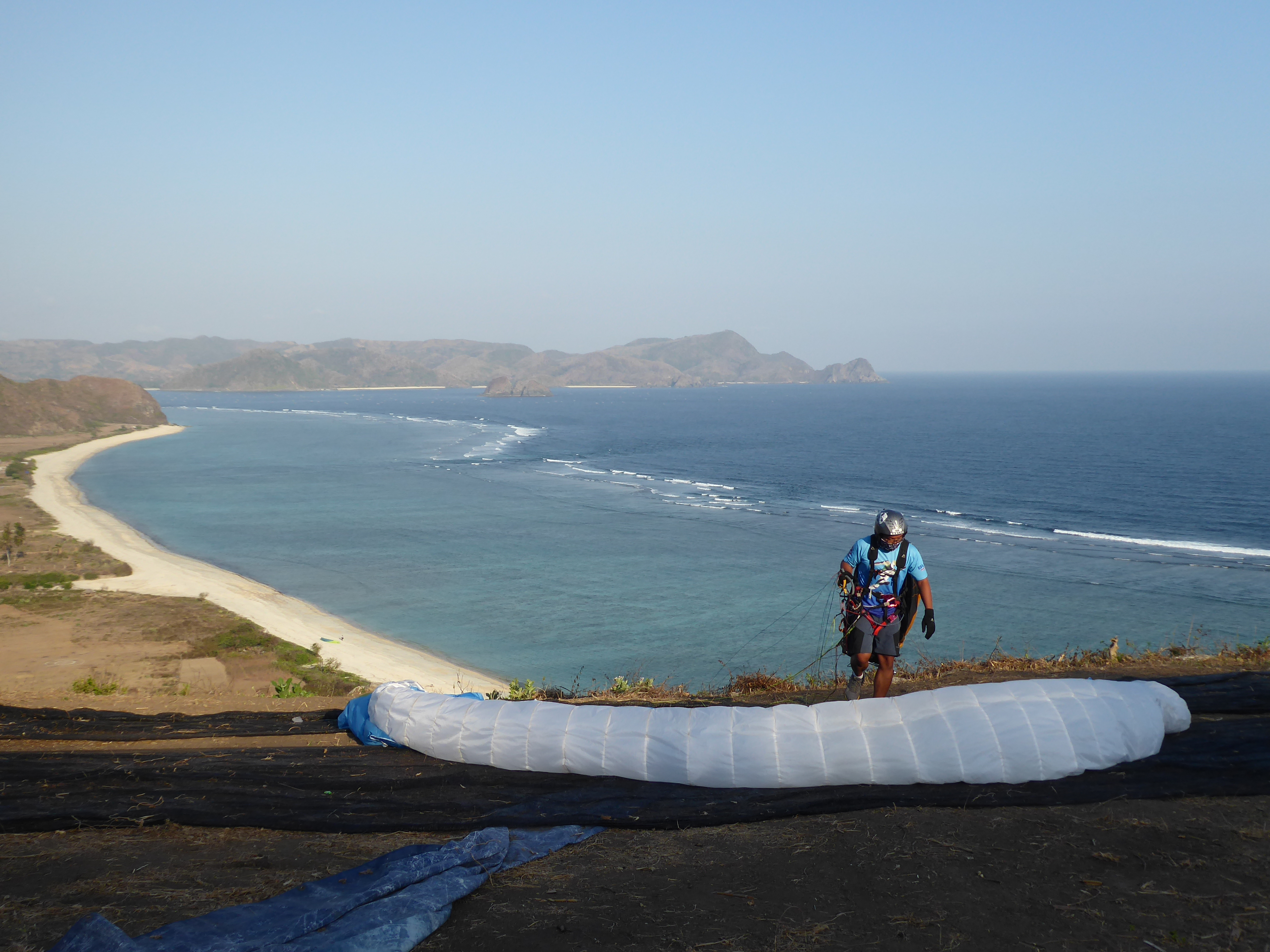 Nach dem wir euch am Flughafen auf Bali abgeholt haben, verbringen wir 3 Tage mit Fliegen, Baden im Indischen Ozean und was euch sonst noch Spaß macht. Wir fliegen hier am südlichsten Punkt von Bali an der Küste. Die Kante ist ca. 18km lang. Fliegt man sie einmal komplett ab, hat man also um die 36km auf dem Zähler. Soaring bis die Sonne unter geht. Landen am Strand, abkühlen im tropisch warmen indischen Ozean und dann noch ein kühles Landebier am weißen Sandstrand. Rückwärtsstart und Top-Landen so oft man will. Ein perfekter Ort um dies zu trainieren. Das fliegen hier an der Küste ist einfach und traumhaft schön. Die Ausblicke sind atemberaubend. Wenn die Bedingungen passen, dann besuchen wir ein weiteres Fluggebiet bei Candi Dasa im Osten Bali´s. Hier könnt ihr im thermodynamischen Aufwind mehrere hundert Meter aufdrehen und den spektakulären Ausblick auf mehrere Nachbarinseln genießen. In der Ferne ist der 3700m hohe Vulkan Mt. Rinjani auf Lombok zu sehen.