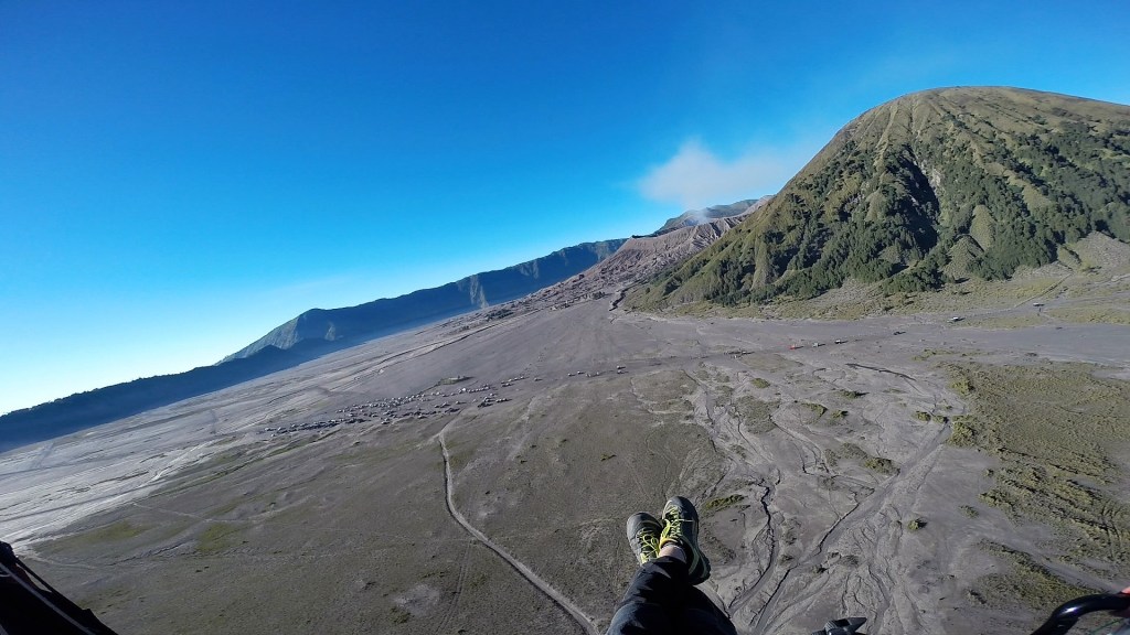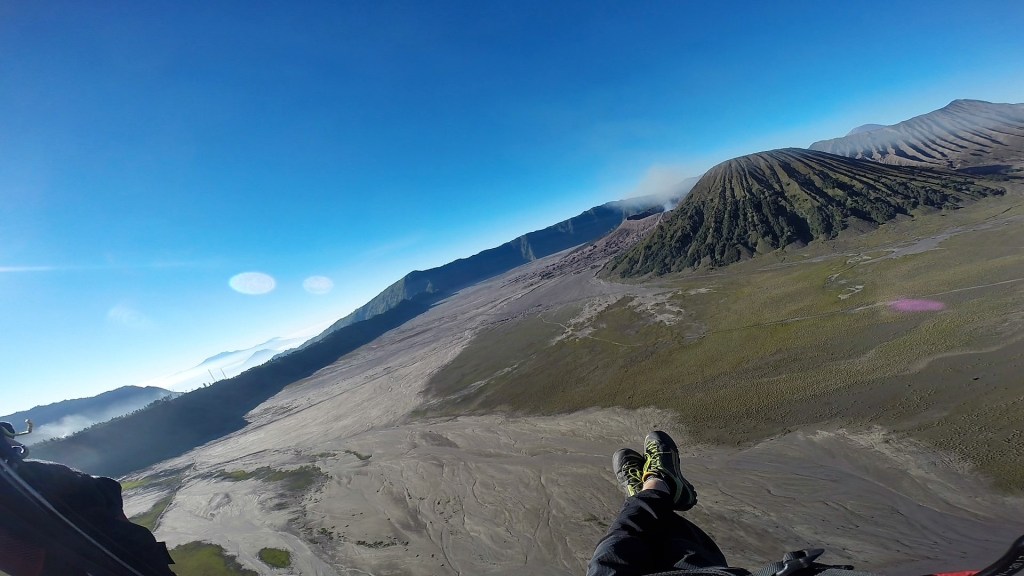 Am nächsten Tage fahren wir zum ersten richtigen Fluggebiet mit dem Namen Batu. 2 Tage Thermik mit Ausblick auf die Stadt und mehrere aktive Vulkane. Nach Batu werden wir die Grenze nach Zentraljava überschreiten (das ist natürlich nicht wirklich eine Grenze). Hier haben wir im tropischen Bergland mehrere Startplätze mit guter Thermik und XC-Potential zur Auswahl. Wo es genau hingeht, entscheiden wir kurzfristig.