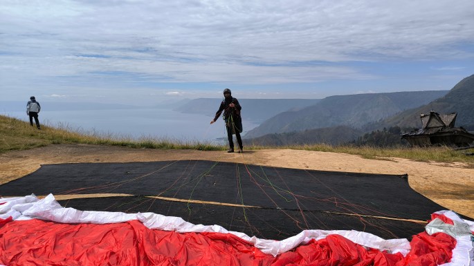 Nach dem Abenteuer im Dschungel geht es wieder zurück zum Lake Toba. Insgesamt gibt es hier 6 Startplätze. Mit etwas Glück, können wir auch die große Jesus-Statue überfliegen. Die Kulisse dort ist spektakulär und unvergesslich.