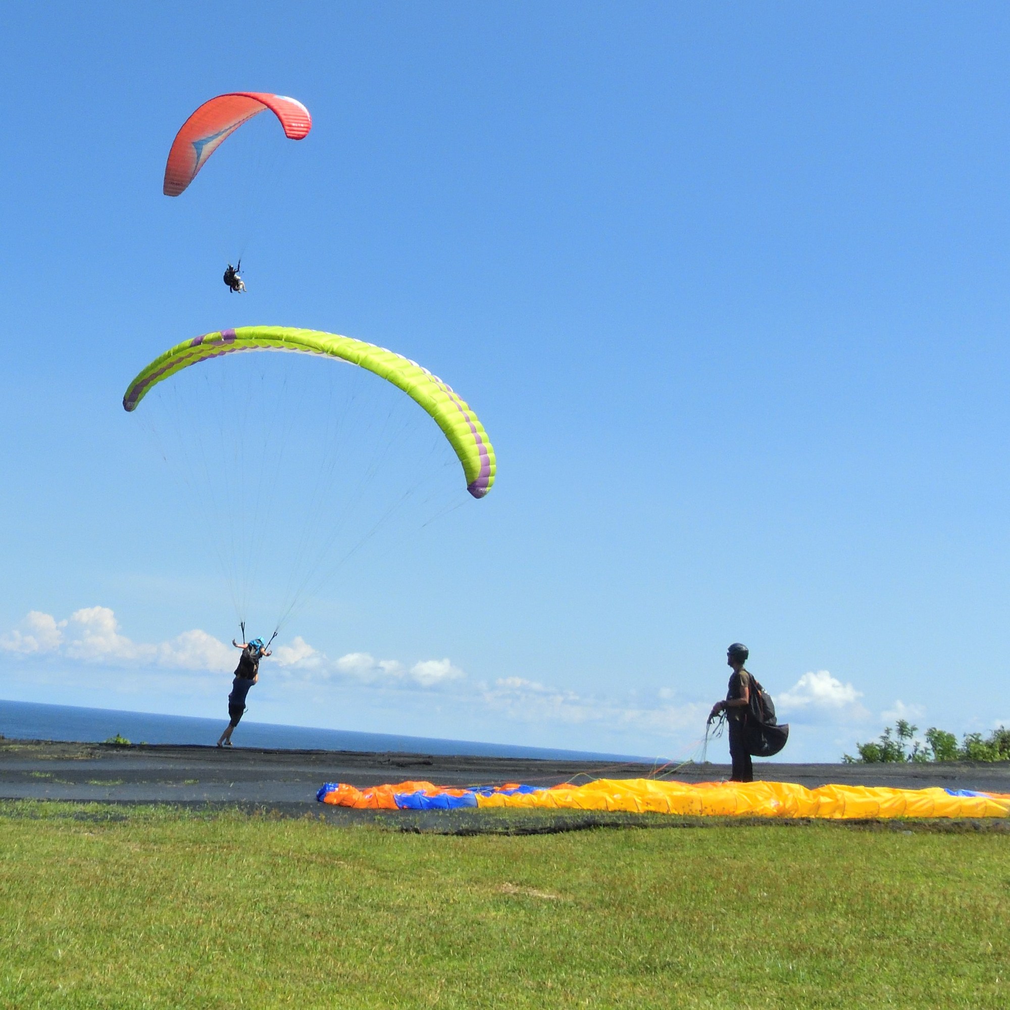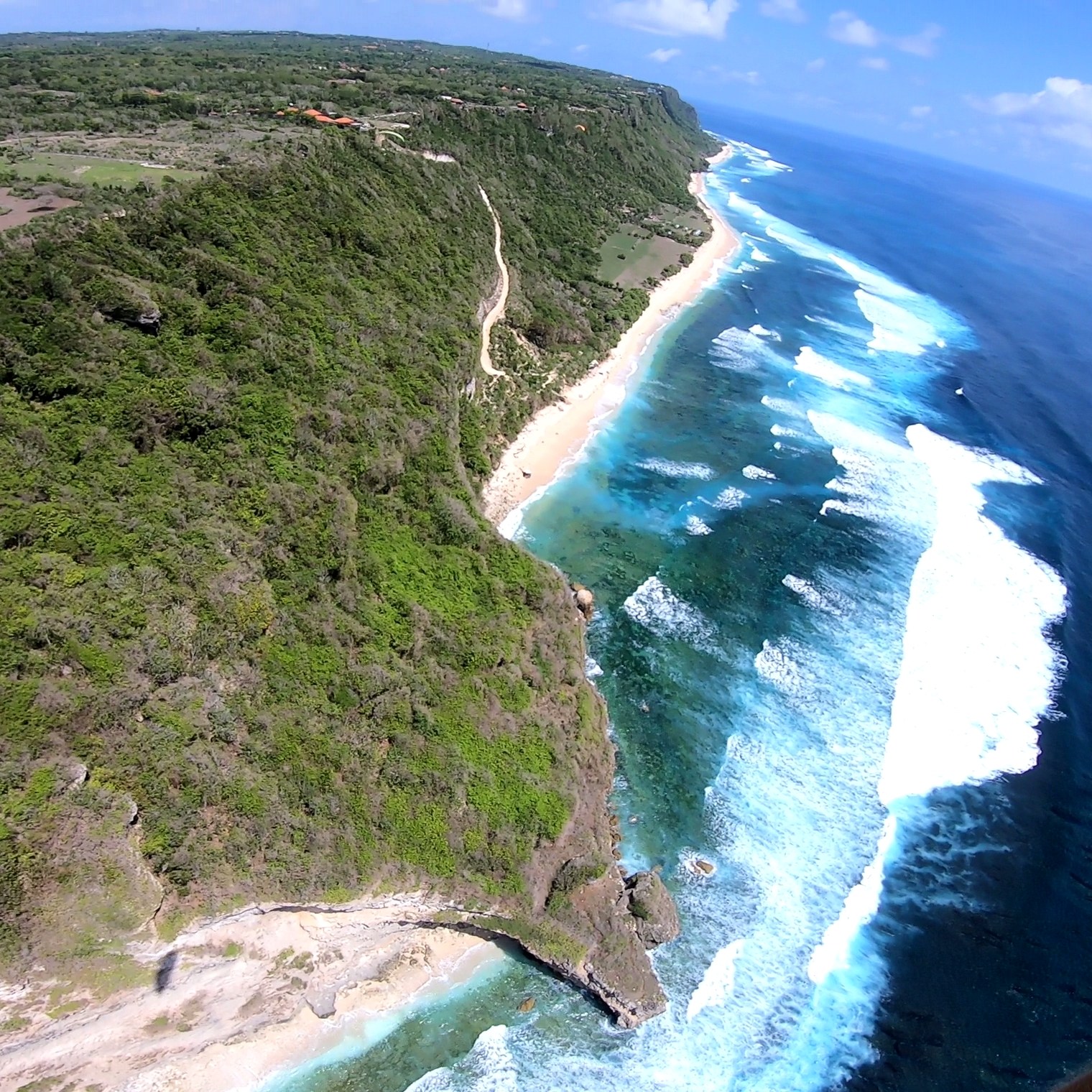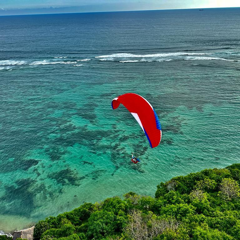 Wir fliegen hier am südlichsten Punkt von Bali an der Küste. Die Kante ist ca. 18km lang. Fliegt man sie einmal komplett ab, hat man also um die 36km auf dem Zähler. Soaring bis die Sonne unter geht. Landen am Strand, abkühlen im tropisch warmen indischen Ozean und dann noch ein kühles Landebier am weißen Sandstrand. Rückwärtsstart und Top-Landen so oft man will. Ein perfekter Ort um dies zu trainieren. Das fliegen hier an der Küste ist einfach, traumhaft schön und auch für Anfänger geeignet. Die Ausblicke sind atemberaubend. Wenn die Bedingungen passen, dann besuchen wir ein weiteres Fluggebiet bei Candi Dasa im Osten Bali´s. Hier könnt ihr im thermodynamischen Aufwind mehrere hundert Meter aufdrehen und den spektakulären Ausblick auf mehrere Nachbarinseln genießen. In der Ferne ist der 3700m hohe Vulkan Mt. Rinjani auf Lombok zu sehen.